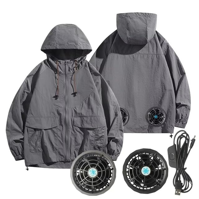[Vasarhely] 扇風服 ファン付き作業服 マウンテンパーカー 男女兼用 5段階風量調節可 3D循環送風 長袖 USB給電 熱中症対策 UPF50+ 登山 釣り(2XL グレー)