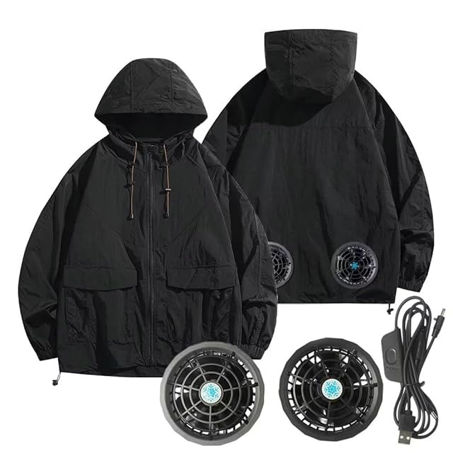 [Vasarhely] 扇風服 ファン付き作業服 マウンテンパーカー 男女兼用 5段階風量調節可 3D循環送風 長袖 USB給電 熱中症対策 UPF50+ 登山 釣り(S ブラック)
