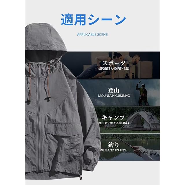 [Vasarhely] 扇風服 ファン付き作業服 マウンテンパーカー 男女兼用 5段階風量調節可 3D循環送風 長袖 USB給電 熱中症対策 UPF50+ 登山 釣り(2XL グレー)
