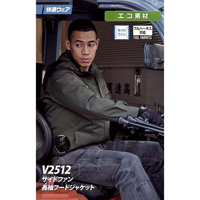 村上被服 サイドファン長袖フードジャケット(単品) V2512<br />※ファンバッテリー別売り<br /><br />夏の作業に欠かせない空調機能を取り入れたファン付き作業服の快適ウェア。<br />※SV500,V15シリーズ以前のデバイスをご使用の場合、<br />4L以上はV80ロングケーブルがおすすめです。<br />※V28シリーズ以前のデバイスをご使用の場合、6L以上は<br />V88ロングケーブルがおすすめです。<br /><br />■素材<br />ポリエステル 65%・綿 35%<br /><br />■機能<br />サイドファン<br />UVカット<br />消臭テープ<br />エコ素材<br />ロゴ入りフロントファスナー<br />両胸マチ付きポケット<br />フードストレッチパイピン<br />フードゴムスピンドルストッパー<br />耳部分綿冷感コンプレッション<br />袖ペン差し<br />ダクト<br />ランヤード取り出し口<br />隠し2丁掛け対応フック掛け<br />フード取り外し<br />左右胸ポケットコード通し穴<br />ケーブル止めマジックテープ<br />ファスナー付きバッテリーポケット<br />カフス隠し釦 氏名片布