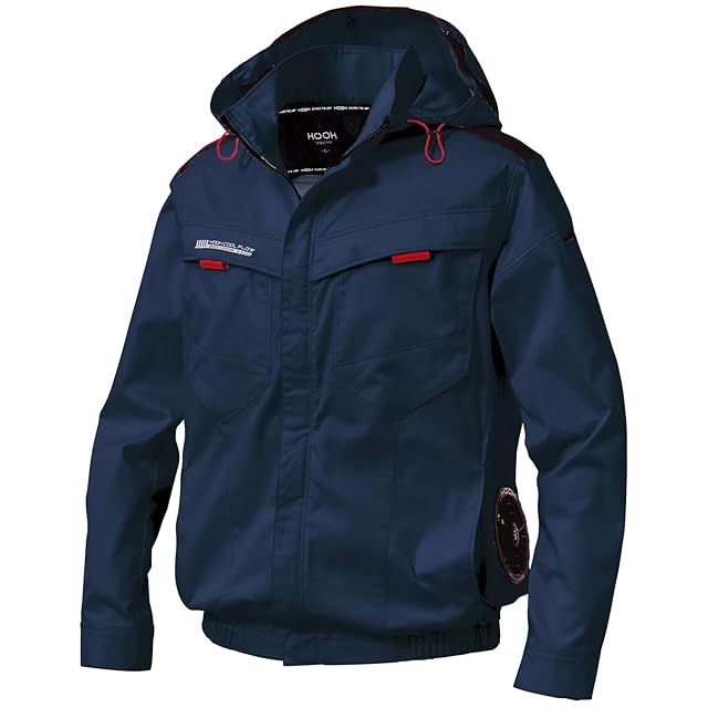 [武蔵野ユニフォーム] 村上被服 サイドファン長袖フードジャケット V2512 快適ウェア 空調作業服 フルハーネス対応 <025-V2512>(1-ネイビー 3L)