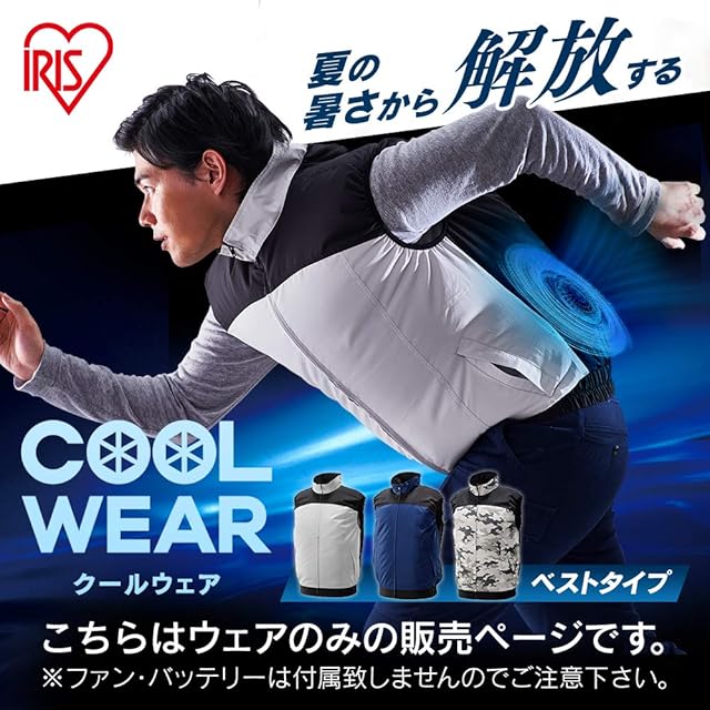 アイリスオーヤマ 【服のみ】ファン付作業服 ファン付空調服 クールウェア 熱中症対策 ベスト 単品 M ネイビー 動作を邪魔しないフィット感 空調 服 作業着 夏用 キャンプ スポーツ 運動 暑さ対策