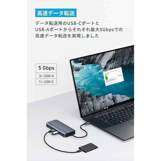 高速データ転送:USB-Cポートと3つのUSB-Aポートから最大5Gbpsでの高速データ転送を実現しました。高速データ転送で即座に同期することが可能です。