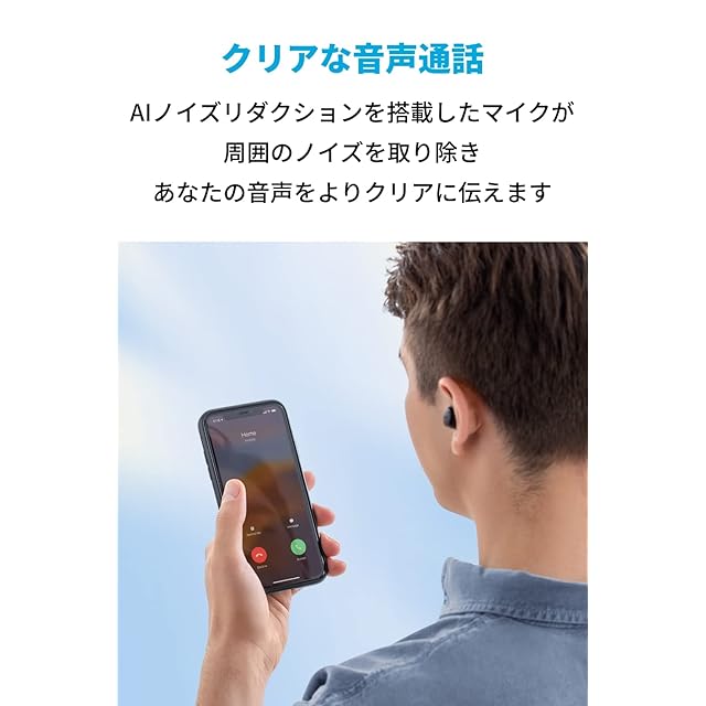 クリアな音声通話:AIノイズリダクション機能を搭載した4つ(左右のイヤホンに各2つ)のマイクが周囲の雑音を除去し、あなたの音声をより大きくクリアに伝えます。テレワークやWEB会議にもおすすめです。