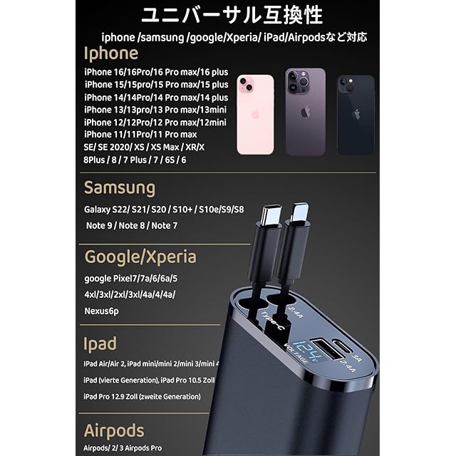 【幅広い互換性】このシガーソケット充電器は12V-24Vの車両に対応しており、ほぼすべてのシガーソケットを装備した車で使用できます。iPhoneやAndroidをはじめ、タブレット、イヤフォン、モバイルバッテリー、スポーツウォッチなど、様々な機器の充電が可能です。