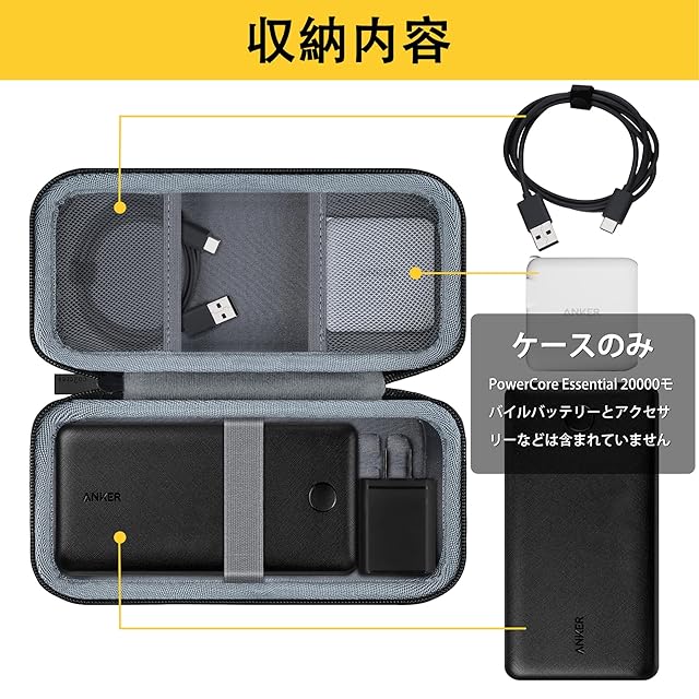 【対応機種】Anker PowerCore Essential 20000mAh co2CREA収納ケースはpowercore essential 20000のために特別に設計されており、anker powercore essential 20000 モバイルバッテリーだけではなく、anker USB-A & USB-Cケーブルなどをまとめて収納できます。