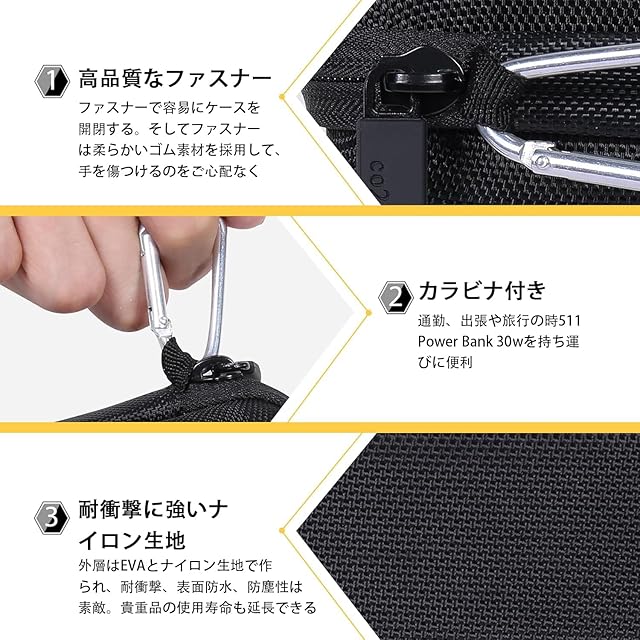 【外層は半防水】外層はEVA素材とナイロン製で、硬く、耐衝撃性、耐傷性に優れています。表面防水や防塵性にも優れています。Anker 511 Power Bank (PowerCore Fusion 30W)をしっかりと保護します。
