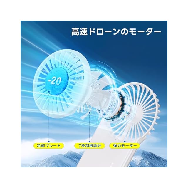 ハンディファン 冷却プレート 軽量 携帯扇風機 静音 冷感 手持ち扇風機 大風量 強力 ハンディ扇風機 5段階風力調節 クーラー機能 Type-C急速充電 小型 カラビナ付き 旅行・通勤・通学(ホワイト)