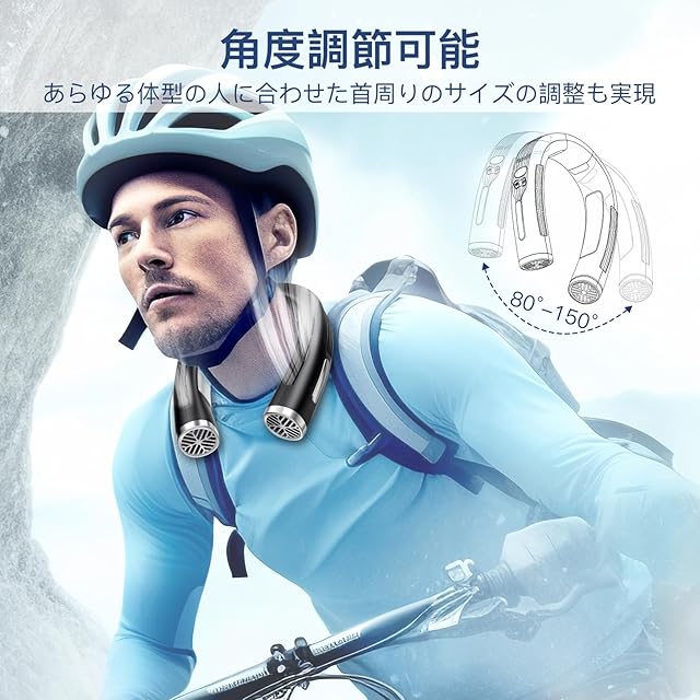 [フィット感&6000mAh大容量]首掛け部には柔軟性のあるシリコン素材を採用し、着脱しやすくなっていますし、女性から男性まで、あらゆる体型の人に合わせた首周りのサイズの調整も実現できます。さらに、大容量の6000mAhバッテリーを搭載し、約2時間で充電済み、満充電で最大10時間の連続稼働が可能です。そして、風量を最大にして体を涼しく確保ことができ、長時間の使用でも安心して使えます。