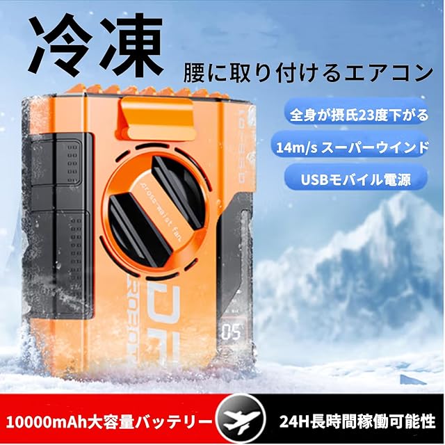 腰掛け 携帯扇風機 10000mAh 首掛け/腰掛け/卓上/手持ち 小型 強力 屋外作業 熱中症対策 Type-C充電 ハンディファン ポータブル扇風機 静音運転 5段階調 上部送風 両手解放 最長24時間動作 超強風 多機能 LED残電表示 Dcモーター 多機能 釣り ガーデニング 登山 サイクリング 通勤 通学 (オレンジ)