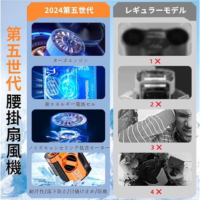 【1台4役】この一台の小型扇風機は、あらゆる使い方に対応し、四つの用途を満たす。腰掛け扇風機 ベルトファ として、熱い夏の日に衣服に涼しさを運びます。首掛け扇風機 として、じんわりと心地よい風を感じる。手持ち扇風機として、自分のペースで風を楽しむ。卓上扇風機として、オフィスや自宅で爽やかな風に包まれることができます。
