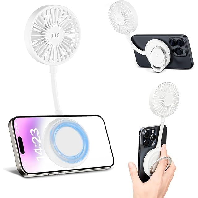 JJC マグネット式 スマホ 扇風機 Magsafe対応 ハンズフリー ハンディファン 携帯扇風機 USB充電式 超軽量 iPhone 16 15 14 13 pro max plus に適用 角度に調節可能・3段階風量調節 スマホホルダー スマホリング スポーツ観戦/通勤/通学/オフィス/花火大会/山登り/旅行用 暑さ対策