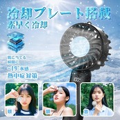 【冷却プレート搭載・表面温度最低約15℃】搭載された冷却プレートが肌を瞬間冷却。表面温度を最小約15℃まで素早く引き下げ、猛暑対策・暑さ対策に大活躍。携帯扇風機と冷却機能を組み合わせた画期的なポータブルファンです