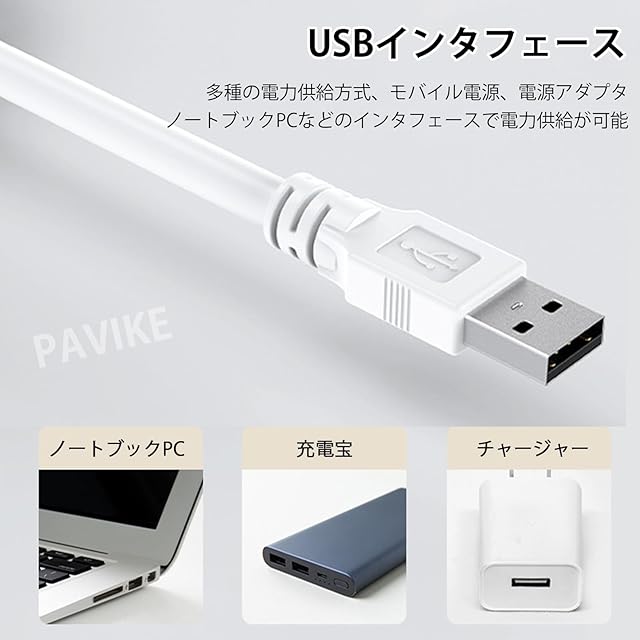 PAVIKE usb扇風機【白】扇風機小型 USB直挿し式で、7枚羽根設計、小型で持ち運びやすく、家庭、オフィス、キャンプ、旅行などに最適