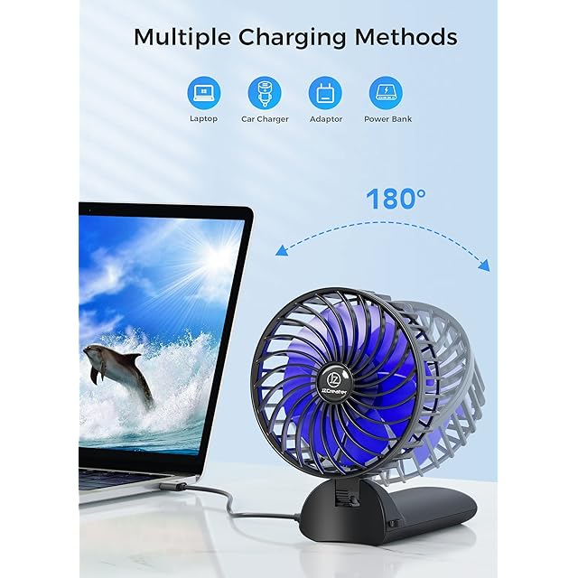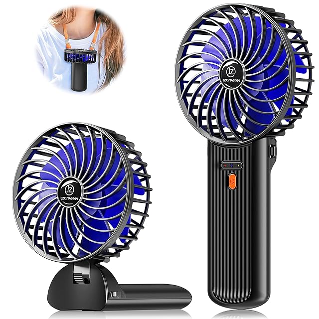 JZCreater 手持ち扇風機 ハンディファン 携帯扇風機 卓上扇風機 小型 静音 充電式USB扇風機 バッテリー内蔵 4段階風量調節 7枚羽根 折り畳み ミニ扇風機 小型扇風機 熱中症予防対策 手持ち/卓上/首掛け適用(黒と青のコントラスト)
