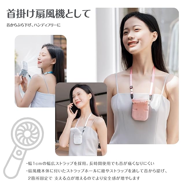 【角度自由自在】 首にかけたまま自由自在に角度調節が可能。首周りや顔など、風の欲しい場所へ的確に送風できる、痒いところに手の届く作り。
