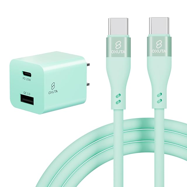 For iphone16 iphone15 タイプc 充電器ケーブル セットpd 20W PSE 認証 ACアダプター usb-c電源アダプタ usb コンセント 急速 PD QC 対応 アイホン Android アンドロイド TYPE-C コード スマホ 折畳式 電源 (グリーン, AC充電器+Type-C to Type-C 1m)