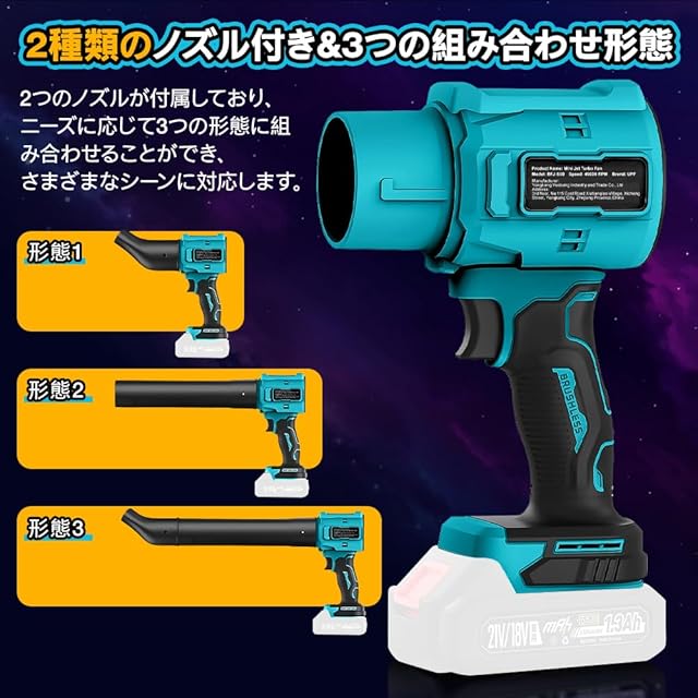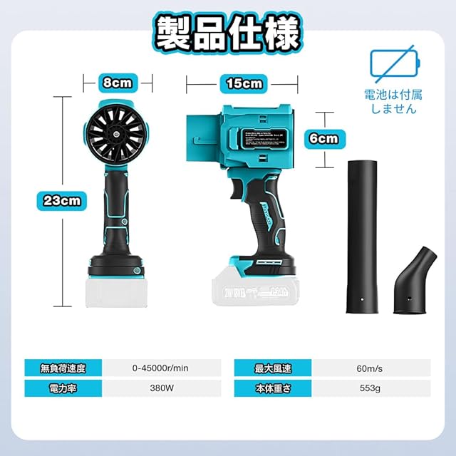【パッケージ内容★12ヶ月品質保証】このブロワーは、様々なシーンに適応でき、ご家庭作業台やオフィスにあるあらゆる電子機器のホコリやゴミを取り除くだけでなく、車窓の水滴を吹飛ばしたり、落ち葉を掃除したりすることもできます。パッケージ内容:ブロワー×1、ノズル×2。(注意:バッテリー・充電器別売 )ご購入日から30日以内に故障があった場合、交換または返金致します。ご購入日から12ヶ月間には、製品に不具合が生じた場合は、または何がご不明なところがございましたら、ご遠慮なく弊社までご連絡ください。当店は無料で交換が々なシーンでの使用に適しています。