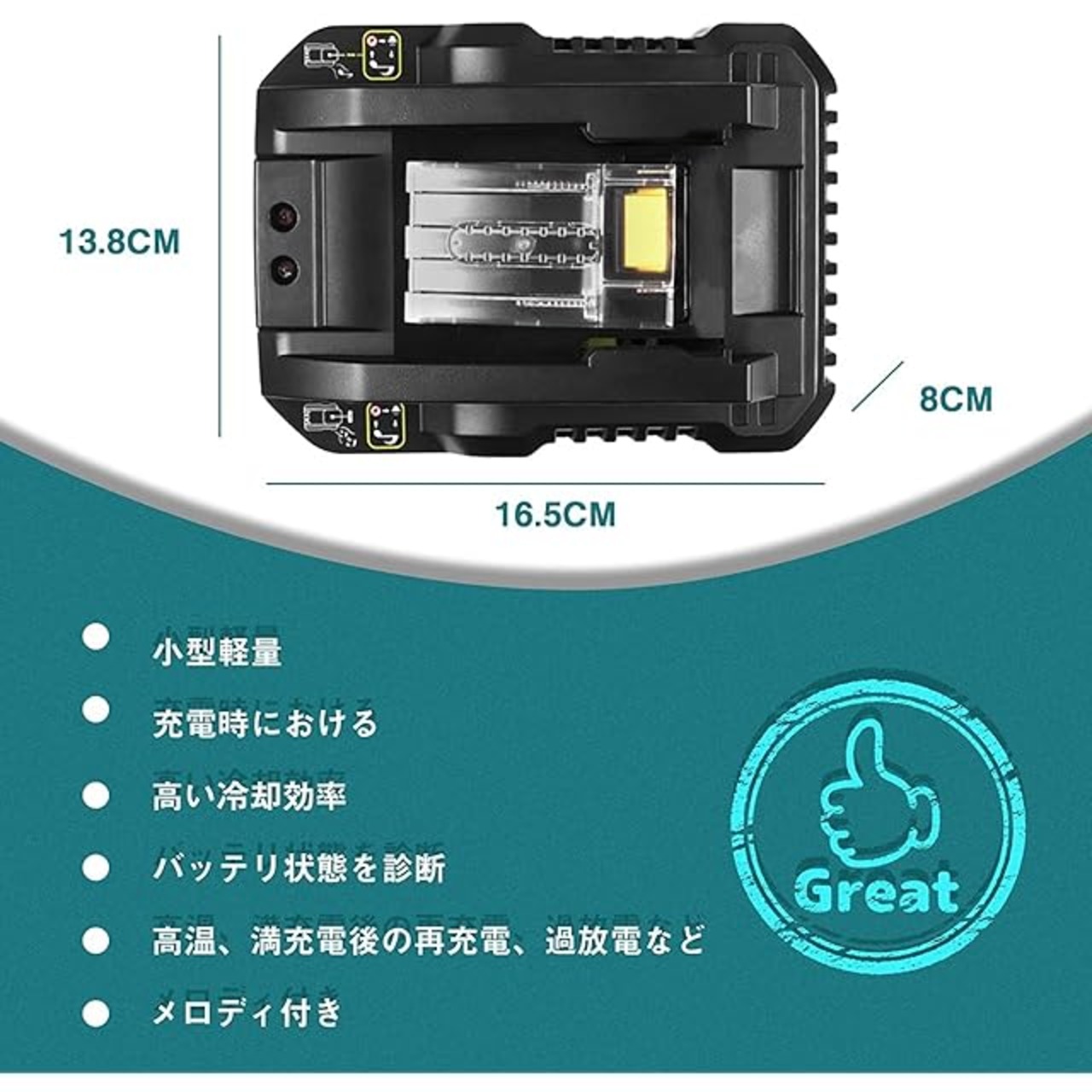 ♫***♫【BL1860B高容量】マキタ18v互換バッテリーはたっぶり6.0Ah 高容量入っており、頻繁に充電する必要ないです。現場で作業すれば大変便利です。DC18RC充電完了メロディ付きます。高い冷却効率:冷却属の流れを最適化することで、全てのバッテリセルを効率よく均一に冷却します。バッテリー状態を診断:高温、満充電後の再充電、過放電など。