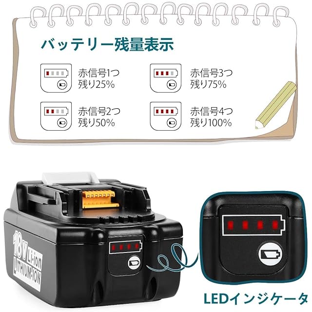 BL1860B 互換バッテリー:BL1815 BL1830 BL1840 BL1845 BL1850 BL1860 BL1830b BL1840b BL1850b BL1860b LXT400 194205-3 194230-4など。 対応充電器DDC18RA、DC18RC、DC18RD、DC18REなど。電方法は純正品と同じです(純正・弊社製互換充電器とも充電できます)。