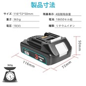型番:マキタ互換バッテリー BL1830B 利点:薄型!!小型軽量 ブラント:Waitley セル:18650リチウムイオン ご注意:急速充電器に対応できないです、純正低速充電器に充電できます。