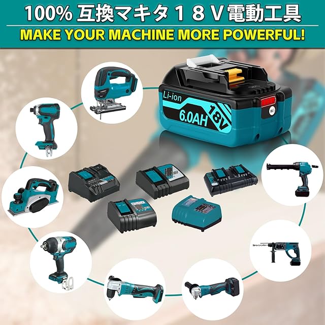 【互換性】BL1815b BL1820b BL1830b BL1840b BL1850b BL1860b BL1870b 194205-3 194230-4 LXT400など対応の電動工具も使用できます。対応純正充電器:DC18RF、DC18RE、DC18RD、DC18SD、DC18SF