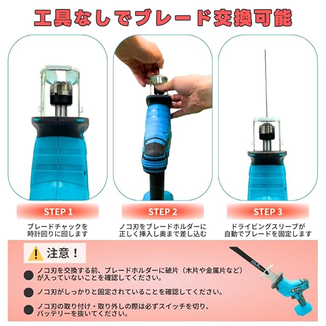 マキタ 互換 MAKITA 対応 充電式 レシプロソー 電動 のこぎり 刃 4本付き 木材 金属 小型 コードレス 電動工具 互換 製品 14.4V 18V 対応 バッテリー 初心者 本体のみ (RECI01) (本体単品(ブルー))
