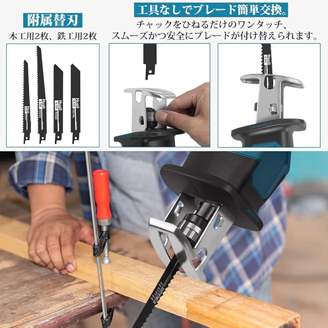 充電式レシプロソー 片手 ATSS01Bセット 収納ケース 替刃4本付き 片手 収納ケース 替刃4本付き 電動のこぎり マキタ18Vバッテリーbl1860bなど使用可能 ブラシレスモータ 無段変速 庭木の剪定 高速切断 DIY 枝切り 粗大ゴミ解体 アルミニウム切断 配管作業 伐採作業 3000mAh バッテリー付き 即使用可能フルセット マキタ互換品