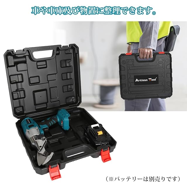 アルチザンツール 充電式メタルカッター ATMC01B マキタ18Vバッテリー対応 板金ハサミ 切断 せん断 金属 コードレス マルチカッター 金属カッター アイアンカッター 二ブラー 板金はさみ 鉄板【バッテリーと充電器は別売】マキタ互換品 専用収納ケース付き