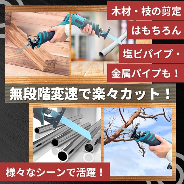 ✅【プロフェッショナル設計】現役のプロ職人の意見を反映した設計により、木材、鉄、非鉄金属、プラスチックなど、様々な素材の切断に対応。工具無しで簡単に刃を交換できるキーレスチャックシステムを搭載し、作業効率を大幅に向上させました。