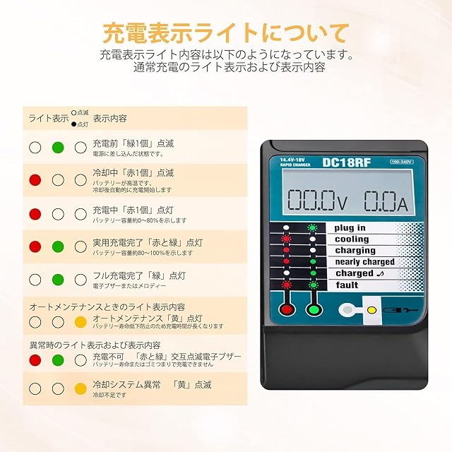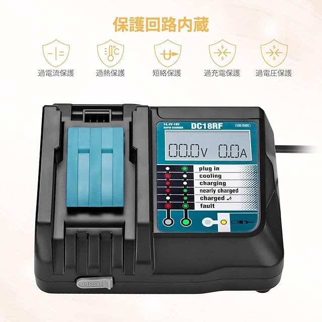 【 5000mAh大容量バッテリー】5000mAhの大容量はもっと長く放電時間で、使用時間が長くなります。安全性と耐久性が問題ない。着脱はとても便利です。【対応充電器】 DC18RA / DC18RB / DC18RC / DC18RD / DC18SF / DC18SE /DC18SD/ DC24RC急速充電器DC18RCなどに対応できます、DC18RCで充電しますと約55分で充電します。