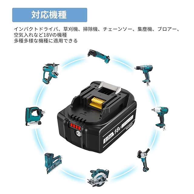 【優れる性能】ダブル新機能付き:残量表示✙自己故障診断。マキタ 18v バッテリーは高品質セル搭載で、耐久性が高く、長期間使用可能です。従来の製りも小型・軽量化し、コスパが良い商品です。純正バッテリーよりも圧倒的に安価。多種多様な機種に対応するパウーメモリ効果がないため、継ぎ足し充電も可能になりました。安心.安全.高品質セル搭載で、内部セルを守る保護回路を搭載しているため、バッテリーが良好に動作します。