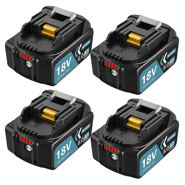 <br>互換マキタ 18v バッテリー商品仕様 <br>型番:BL1860B <br>電圧:18v <br>容量:6.0Ah(6000mAh 容量) <br>種類:リチウムイオン電池(Li-ion) <br>個数 : 4個セット <br>着脱方式:スライド式 <br>急速充電器 DC18RA / DC18RB / DC18RC / DC18RD / DC18SF / DC18SE /DC18SD/ DC24RCなどに対応できます。 <br>正規の充電器と自社の充電器だけで対応していますので、他の非正規充電器も充電できない場合があります。ご注意ください~ <br><br>【対応機種】<br> コードレスドリル BDF451SFE, BDF452HW; モードインパクトドライバ TP144D, BTP140, BTP140Z <br> アングルインパクトドライバ TL061D, BTL061, BTL063; スクリュードライバ BFR550L, BFR550Z, BFR750, BFS450 <br> コンクリートバイブレータキッド BVR350, BVR450, BVR850; インパクトレンチ TW251D, TW450D, BTW251, BTW253, BTW450 <br> マルノコ HS630D, BSS610, BSS610SFE, BSS610X2, BSS610Z, BSS611X, BSS611Z, BCS550, BSS501 <br> ハンマドリル HR202D, HR202DRFX, HR202DZK, BHP451, BHR240, BHR202, BHR202RFE, BHR202Z, BHR240, BHR240Z, BHR241, BHR241Z <br> インパクトドライバ TD145D, TD144D, BTD140, BTD140Z, BTD141, BTD1444; <br> ドライバドリル HP454D, BDF451, BDF454Z, DF454D, HP454DZ, BDF442RFE, DF445D