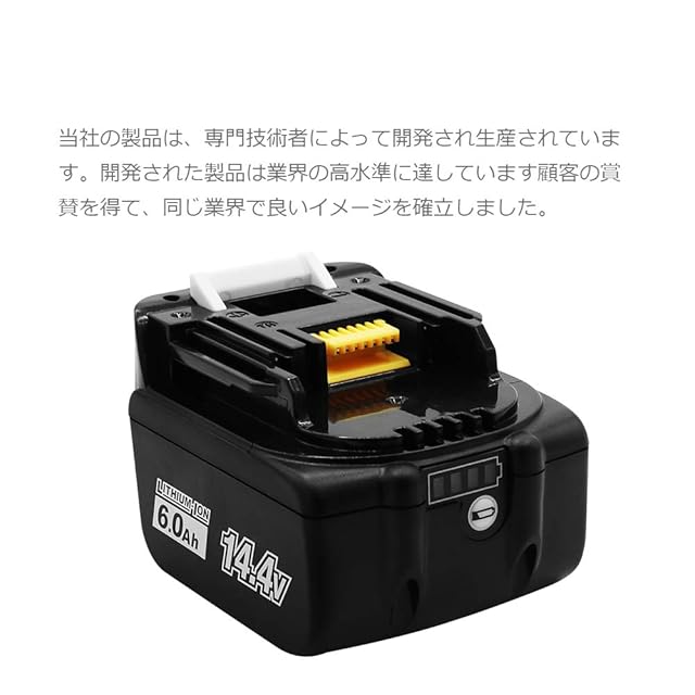 ※マキタ14.4Vバッテリに対応。電圧:14.4V 容量:6.0Ah ワット数:86.4W 種類:リチウムイオン電池 bl1460 BL1440B 1430B BL1430 194065-3 194066-1 bl1450 bl1460 bl1460bマキタ充電器DC18RC、DC18RAなど対応。他社の充電器は互換性がない可能性があり、純正品の充電器をご選んでください。電気用品法に適応のPSEマーク取得済み。