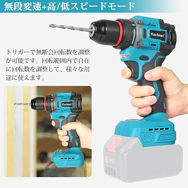 Kachiari 充電式ドライバー 充電式ドリル コードレス 18V 45N.m 21+1段階トルク調節 スピード調節機能 正逆転切替 ブラシレスモーター搭載電動ドリルドライバー 初心者向け DIY 日曜大工 マキタ18Vバッテリー対応 BL1830 BL1840 BL1850 BL1850B BL1860 BL1860B 【工具本体だけ】