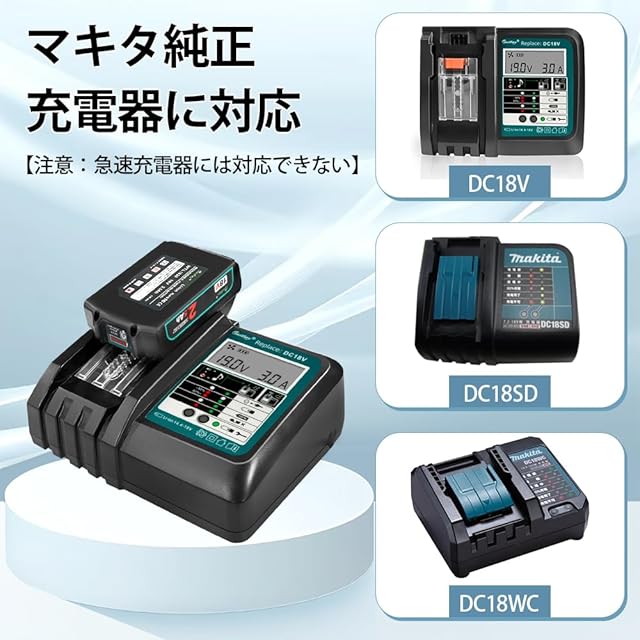 【互換性】マキタ 互換 バッテリーは、さまざまなマキタの18Vシリーズの工具と互換性があります。具体的には、BL1815B、BL1820B、BL1840B、BL1850B、BL1860Bなどと互換性があります。充電器を選ぶ際は、DC18RF急速充電器の使用を避けることが強く推奨されており、純正の充電器を使用することで、バッテリーの寿命を延ばし、正常な性能を発揮することができます