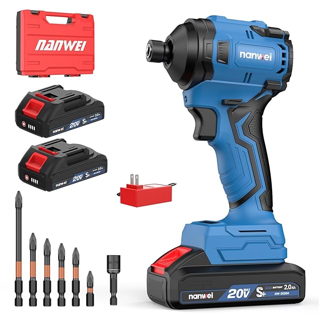 NANWEI インパクトドライバー 最大トルク240N·m ブラシレスモーター 電動インパクトドライバー 1/4インチ 4段出力モード 無段変速 高回転 コードレス 小型軽量 LEDライト付き 充電式 2.0Ahバッテリー2個付き 【電池セット】