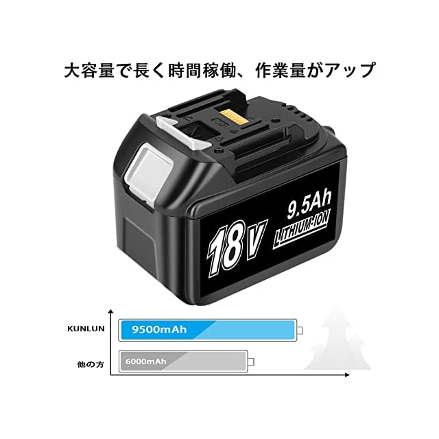KUNLUN 9500mAh 互換 マキタ 18V バッテリー BL1860B マキタ リチウムイオンバッテリー LEDデジタル残量表示 BL1830b BL1850b BL1860b 大容量 LEDデジタル残量表示 マキタ18V電動工具用