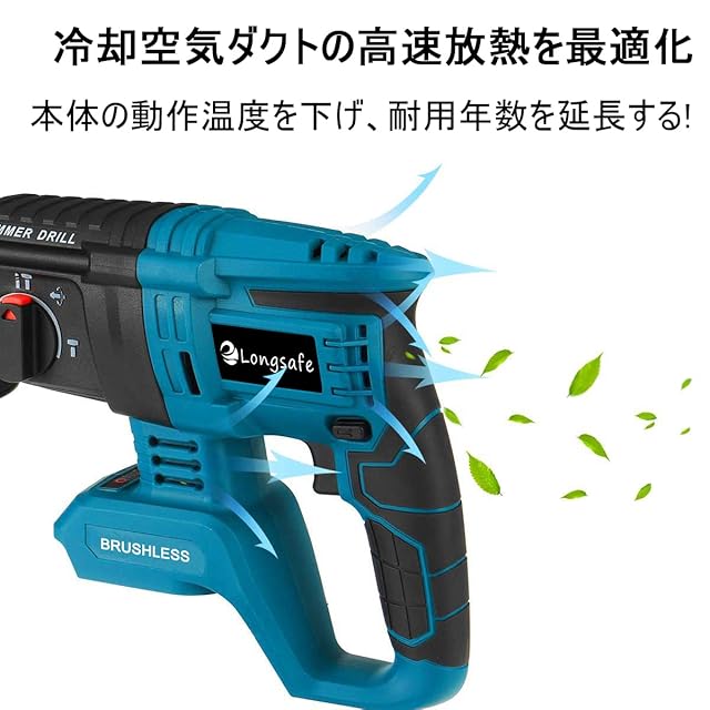 マキタ互換品 ブラシレス ハンマードリル ハンマドリル マキタ互換品 バッテリー専用 ドリルハンマー 互換 電動 充電式 ドリル はつり 18V 14.4V コードレス 18ボルト 14.4ボルト Longsafe (HAM01-BL) ※バッテリー 充電器 別売