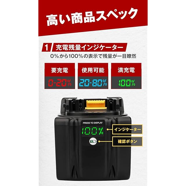 【機能と安全性】視認性の高いパーセンテージでの充電残量表示機能を搭載。個別セル監視回路が入り、大きな基盤で充電を制御する保護回路を搭載。基板表面のコーティングで防塵防水性能に優れています。