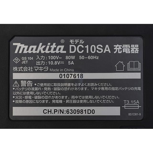 マキタ 充電器DC10SA 10.8V対応 1.5Ahフル充電22分