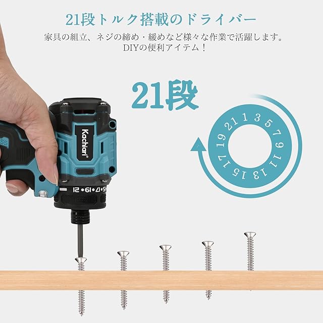 Kachiari 充電式ドライバー 18V 40N.m 21+1段階トルク調節 スピード調節機能 正逆転切替 ブラシレスモーター搭載電動ドリルドライバー ネジ締め 引越し 家具組立 初心者向け DIY 日曜大工 マキタ18Vバッテリー対応 BL1830 BL1840 BL1850 BL1850B BL1860 BL1860B 【工具本体だけ】