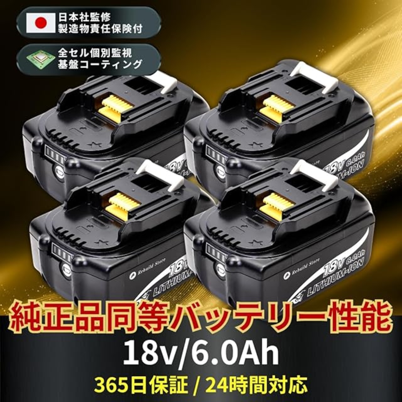 Rebuild Store (リビルド ストア) マキタ 18vバッテリー 互換バッテリー BL1860B マキタバッテリー 1860 マキタ18V 6.0Ah 4個セット