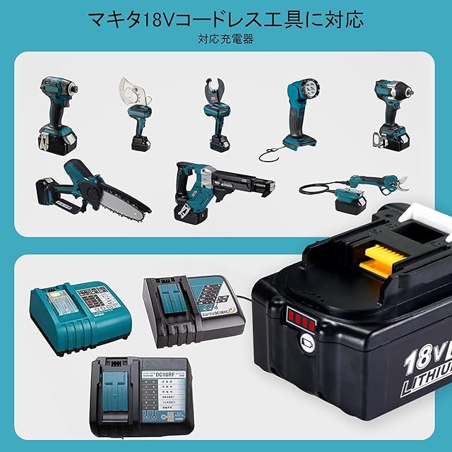 【幅広く使われる】マキタバッテリー18v BL1860B 対応の機種:BL1860B、BL1850、BL1840、BL1830、BL1830B、BL1820B、BL1815、BL1815N など。このBL1860互換バッテリーはたっぶり6.0Ah 超高容量入っており、頻繁に充電する必要ないです。注意:急速充電器非対応