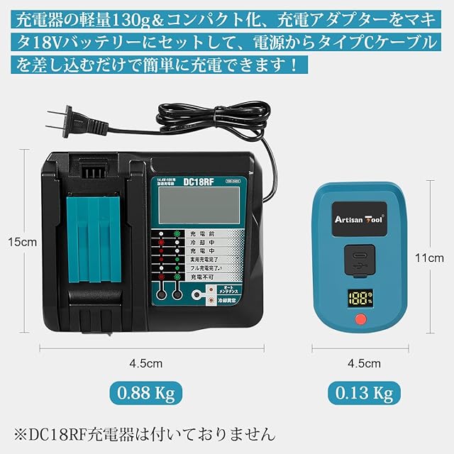 アルチザンツール マキタ18Vバッテリー互換充電器Type-C入力型アダプター マキタ18V専用 バッテリー互換充電アダプタ タイプC充電器アダプター (マキタ18Vバッテリー充電可能)BL1860B/BL1840B/BL1850B/BL1830B/BL1815N/BL1820B