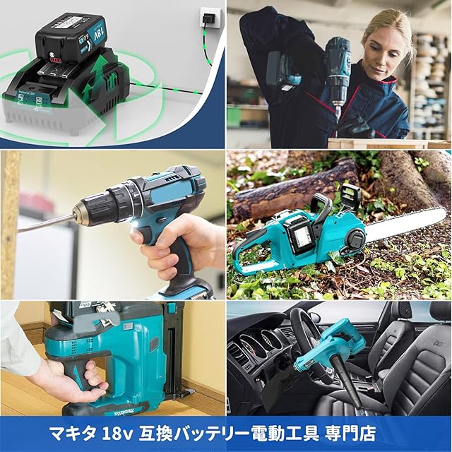 <br>商品の説明 マキタ 18v バッテリー 充電器セット マキタ バッテリー 18v 充電器セット <br><br>型番:マキタ 互換バッテリー BL1860B <br>電圧: 18v <br>容量: 6000mAh <br>電池種類:リチウムイオン 電池 <br>個数:一個 <br>認証:PSEマーク CEマーク取得済み <br>対応充電器:急速充電器DC18RA、DC18RC、DC18RDなどに対応できます。充電方法:充電方法は純正品と同じです(純正・互換充電器とも充電できます)。<br>マキタ 互換充電器DC18RC<br>入力:100~220V 50/60Hz<br>出力:14.4-18V <br>適合バッテリー: <br>マキタ 14.4V:BL1415N/BL1430/BL1430B/BL1440/BL1450/BL1460B/BL1490B <br>マキタ 18V:BL1815N/BL1820/BL1830B/BL1840/BL1850B/BL1860B/BL1890Bなど(マキタ純正 DC18RC 充電器対応機種に準ずます)<br><br>参考値・充電時間: <br>BL1860(18V-6.0Ah):55分 <br>BL1460(14.4V-6.0Ah):55分<br>BL1850(18V-5.0Ah):45分<br>BL1450(14.4V-5.0Ah):45分<br>・BL1840(18V-4.0Ah), <br>BL1440(14.4V-4.0Ah):36分<br>・BL1430(14.4V-3.0Ah) <br>BL1830(18V-3.0Ah):22分<br>・BL1815(18V-1.5Ah), <br>BL1415(14.4V-1.5Ah):15分<br><br>対応機種<br>TD145DRFXB TD145DRFXL TD145DRFXP TD145DRFXWTD146DRFP TD146DRFXB TD146DRFXL TD146DRFXW TD146DZ TD147DRFX TD147DZ TD251DRFX TD251DZ TD171D <br>マキタ MUR シリーズ MUR181DRF MUR181DZ MUR185UDRF MUR190SDST MUR191LDZ MUH305DRF MUH365DRF <br>マキタ MUS シリーズ MUS104DSH MUS104DZ MUS154DSH MUS154DZ <br>マキタ PB シリーズ PB108D PB108DRFX PB108DZ PB180DRFX <br>マキタ PT シリーズ PT351D PT351DRF PT351DZK <br>マキタ TP シリーズ TP140DRFX TP141DRFX TP141DZ <br>マキタ TW シリーズ TW251D TW251DRFX TW450DRFX <br>マキタ UB シリーズ UB182D UB182DRF UB182DZ UB183D <br>マキタ VR シリーズ VR350D VR350DRFX VR350DZ VR450D VR450DRFX VR450DZ <br>マキタ HS シリーズ HS630DRFX HS630DRFXW HS630DZHS630DZW <br>マキタ TD シリーズ TD140D TD144D TD144DRFX TD144DZ TD146DRFX <br><br>長期保存に強い <br>自己放電が少ないため、長期保存しても満充電に近い作業が可能です。 <br>高温や過放電、過負荷状態になると自動的に電気を遮断してバッテリーを守ります。<br>品質に自信があるから、できます。 <br> 【マキタ18vバッテリーBL1860B特徴】 マキタ用リチウムバッテリーとして開発されたバッテリーは、純正品と変わらない 使用感でこれまで多くのお客様にご利用頂いております。<br> 強制冷却で(快速)充電><br>自己放電が少ないため、長期保存しても満充電 に近い作業が可能です,制御基板には充電を制御する保護回路を搭載!<br>√小型 軽量 高容量<br>√通常のタイプとほぼ同じ厚みで収納ケースにも収納可能。 <br>専門的な設備で寿命試験を操作しております。<br> ①ボタン破壊試験<br> ②バッテリーを充電器に着脱 <br>③バッテリーを充放電 <br>④落下試験 工場から出荷前に正規テストを繰り返すことで 高品質を守っております。安格ですが、 商品の耐久性や性能は純正品と遜色がないです。自信を持ってお勧めします。