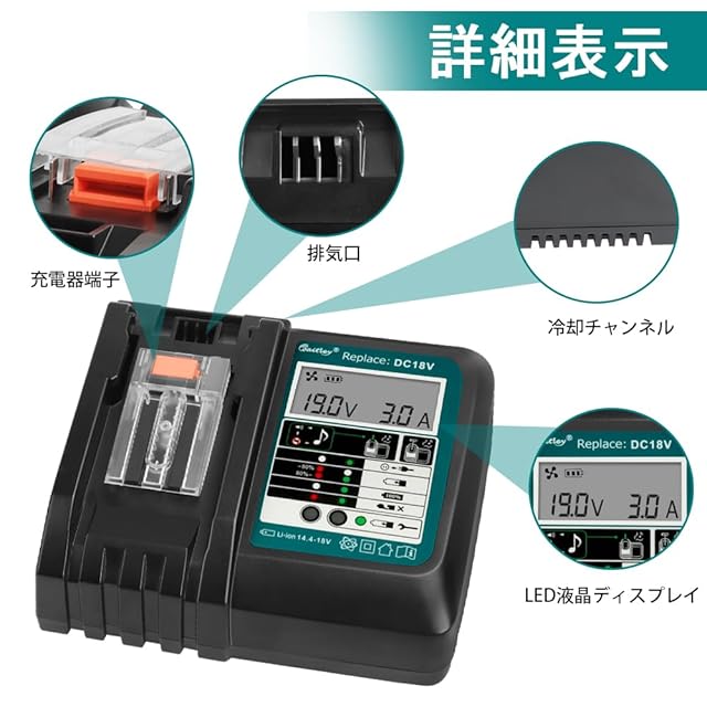Waitley マキタ 充電器 DC18RC 14.4V-18V マキタ互換バッテリー充電器 液晶パネル付き 冷却ファン付き BL1415N BL1420B BL1430B BL1460B BL1815N BL1820B BL1830B BL1860Bなどバッテリー充電可 メロディ付き 連続充電可能 PSE認証済