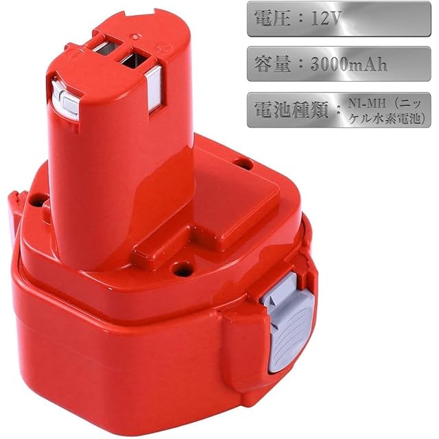 【商品仕様】型番:マキタ12V互換バッテリー 電圧:12V 容量:3000mAh(3.0Ah)数量:2個 種類:ニッケル水素(Ni-MH)バッテリー