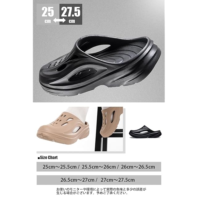 【柔らかいクッションソールで疲労回復】 日本人の足にしっくりと馴染む形状の、土踏まずに合わせて盛り上がっている柔らかいクッションソールでフィット感が抜群。 長時間の歩行や運動後でも、疲労を効果的に軽減し、回復をサポートしてくれるさっと履きやすいリカバリーサンダルです。 【厚みのあるソールで衝撃吸収】 リカバリーサンダルの特徴である厚みのあるソールが、歩行時に地面から伝わる衝撃を効果的に吸収。 インソールは約5cmでクッション性が高く、足への負担を最小限に抑え、快適な歩行をサポートします。 【快適な履き心地でリラックス効果】 ソールには衝撃吸収性に優れた素材を採用しており、抜群のクッション性を実現しています。履いた瞬間から足を包み込む柔らかさは格別で、 リラックスした快適な履き心地を提供します。空気が流れやすく、蒸れにくいのも嬉しいポイント。 【スポーツ後の疲労軽減にも最適】 ランニングや登山後の疲れた足のケアにもおすすめ。スポーツシューズなどから履き替える時に、親指と人差し指の間で挟み履くサンダル(トングサンダル) と違う為、靴下を履いたままでもすばやく履き替えられます。営業職などで移動が多い方や、立ちっぱなしの時間が長い方にも、オフィス内や休憩時間に履くだけで足の疲労を軽減し、快適な仕事環境を提供します。 【様々なシーンで使えるアイテム】リカバリーサンダルとしてはもちろん、ガーデニングや農作業、海辺のレジャーや アウトドア、お風呂の掃除などあらゆるシーンでお使いいただけるので1足あるととっても便利。汚れにも強く落としやすい。お手入れもしやすいサンダルです。 ■サイズ:25cm / 26cm/ 27cm / 28cm /29cm ■素材:EVA素材 ■重量:約490g