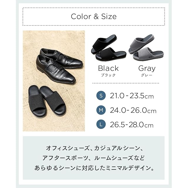 【サイズ、カラー展開】 サイズ:S(21-23cm)、M(23.5-25.5cm)、L(26-28.0cm) / カラー:ブラック・グレー(男女兼用)